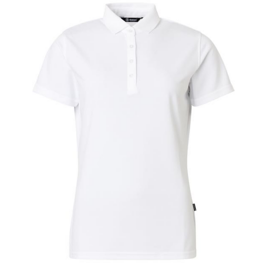 Abacus Cray 2724 100 DryCool dames polo. Dit poloshirt is gemaakt van polyester piqué dat zacht en zeer rekbaar is. De stof heeft DryCool en wicking-functie. Klassieke stijl en pasvorm met platgebreide kraag en knoopsluiting aan de voorkant. Abacus-logo middenachter onder de nek en rechtermouw.