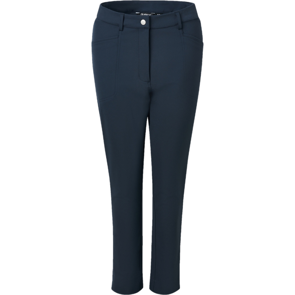 Abacus Elite 2942-300 dames golfbroek. Deze enkellange golfbroek is gemaakt van functioneel materiaal met 4-way stretch dat ook zeer ademend is. De stof heeft een drycool- en vochtafvoerende werking. De broek heeft een rits aan de voorkant, twee voorzakken en twee achterzakken. Riemlussen rond de taille bieden ruimte voor een riem, die zowel op als naast de baan goed van pas komt.
