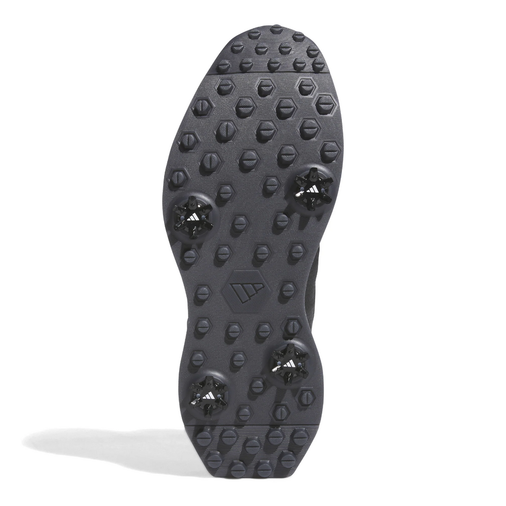Adidas IH5177 Unisex golfboot. Deze RAIN.RDY golfschoen, geïnspireerd op klassieke high-top basketbalschoenen, houdt uw voeten droog zodat u in natte omstandigheden gefocust kunt blijven. Ultralichte Lightstrike-demping levert de hele ronde comfort, en de Adiwear-loopzool met cleats biedt grip op nat gras voor een stabiele houding bij elke swing.