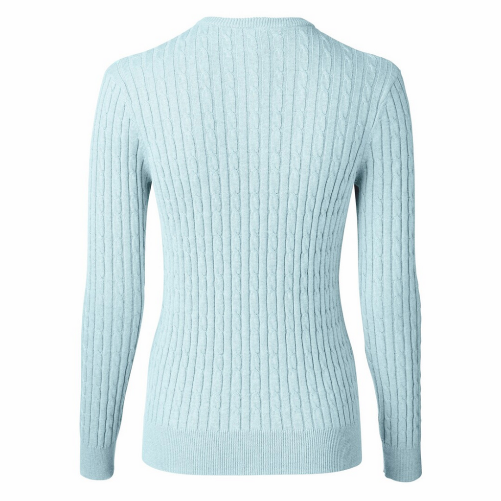 Daily Sports Madeline 443/501 517 dames golftrui. Zachte gebreide trui met vrouwelijke kabelbrei. De geribde V-hals en boorden zorgen voor een mooie pasvorm.