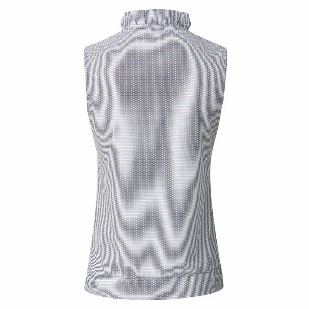 Daily Sports Terni 443/126 590 mouwloze dames polo. Deze polo met geplooide kraag en korte V-hals is gemaakt van sneldrogend materiaal. De lichte tweekleurige jacquardstof is rekbaar. Het heeft splitten aan de zijkant voor comfort.