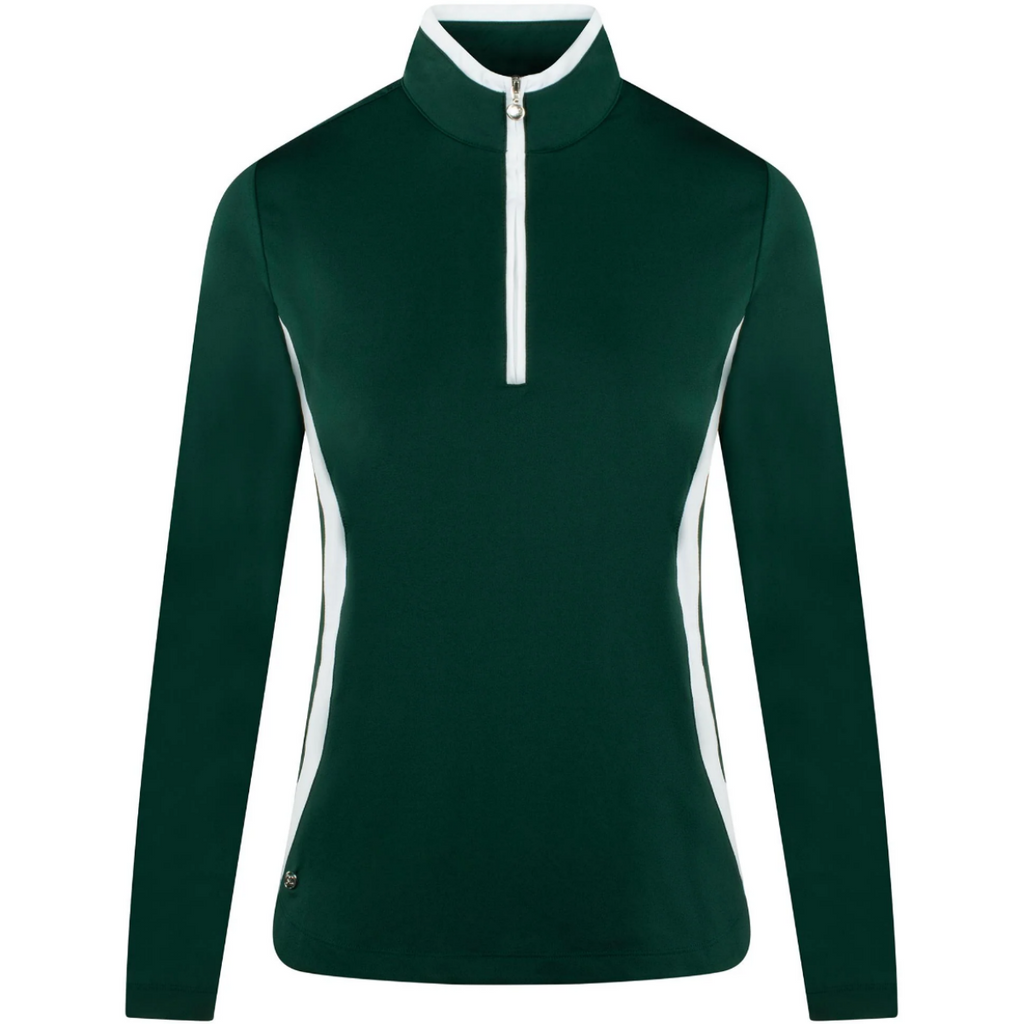 Daily Sports Vichy half neck 1000218 674 dames baselayer. Een veelzijdige golftop met lange mouwen met opstaande kraag. De Vichy heeft een ingetogen ontwerp met contrasterende panelen in het wit en is gemaakt van stretchstof die snel droogt en vocht efficiënt afvoert, wat betekent dat dit golfshirt op zichzelf kan worden gedragen of als laagje onder een gilet of jas als de omstandigheden koeler zijn.