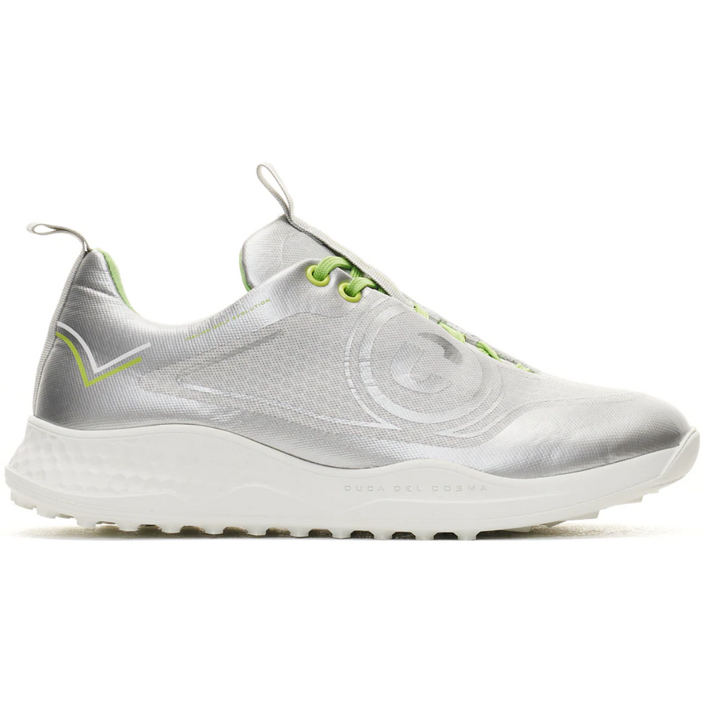Duca del Cosma 121024-603 Wildcat dames golfschoen. Het sportieve gevoel en look van Wildcat houden uw voeten droog en zijn ook nog eens super comfortabel. Comfortabele en ademende ARNEFLEX® verwisselbare binnenzool van traagschuim. Gemaakt van memory foam bedekt met OnSteam® gerecycled microvezel en hiel ondersteuning met gerecycled kurk. De Airplay XII is een recyclebare, innovatieve buitenzool van Duca. De B-Light rubberen buitenzool is voorzien van tweezijdige draaibare driehoekige noppen, zowel conisch als kubusvormig op het draaipunt van de voet om een stevige houding te garanderen met optimale grip, standvastigheid en stabiliteit.