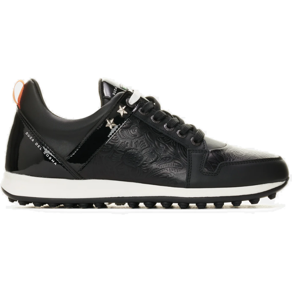 Duca del Cosma MJ 123022-109 dames golfschoen. Net als de perfecte 'Little Black Dress', is dit de perfecte zwarte schoen voor elke golfgelegenheid. Ontworpen in exclusieve samenwerking met Melanie-Jane Lancaster, partner van 6-voudig PGA Tour winnaar, Joost Luiten - kunt u er zeker van zijn dat deze schoen de goedkeuring heeft van een professional. Deze zwarte golfschoen is met recht een alle-vrouws-vriend te noemen: lekker soepel Nappa leer, waterdicht én zwart. Ideaal voor alle weersomstandigheden en eenvoudig te combineren.