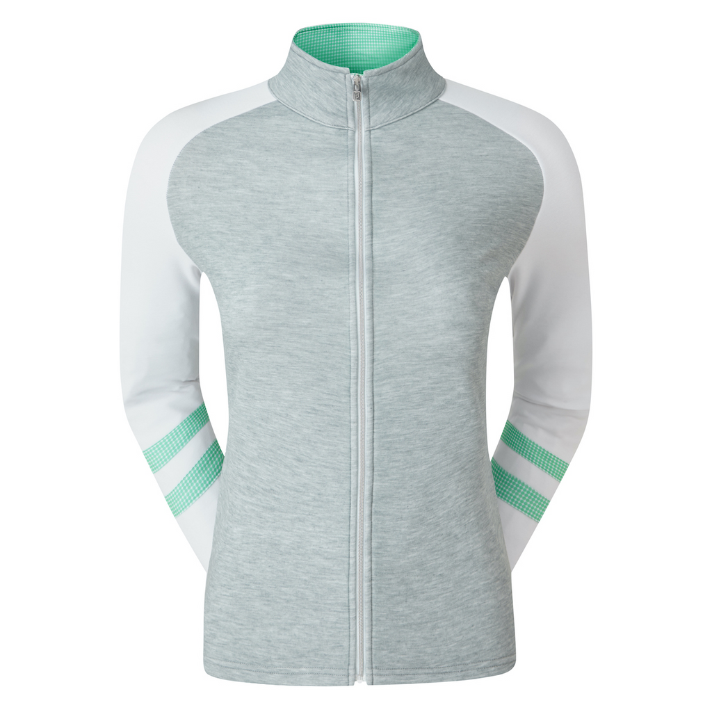 Footjoy 96325 dames midlayer vest met volledige ritssluiting. Deze midlayer is gemaakt van jersey en fleece met stretch. Vochtafvoerende technologie trekt vocht weg van het lichaam. SPF 50 UV-bescherming.