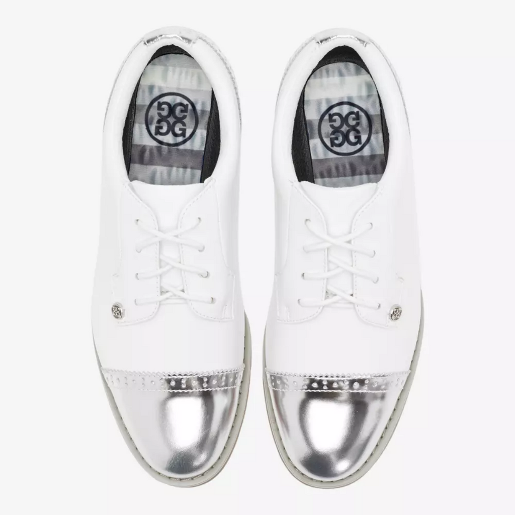 G/FORE Cap Toe Gallivanter G4LC20EF04 dames golfschoen. De Cap Toe Gallivanter IV.0 golfschoen combineert stijl en comfort met een sportieve pasvorm en hoogwaardig waterdicht leer. Dit model heeft een neus- en hielkap van lakleer. Het beschikt over een ultralichte zool in combinatie met een speciaal ontworpen noppenprofiel voor optimale grip op de golfbaan. Deze golfschoen heeft een wasbaar en antimicrobieel voetbed met drievoudige dichtheidsschuimvulling voor superieur comfort, gecombineerd met Comfort System-technologie die luchtcirculatie naar de voeten mogelijk maakt en de ultieme massage voor uw voetzolen biedt.