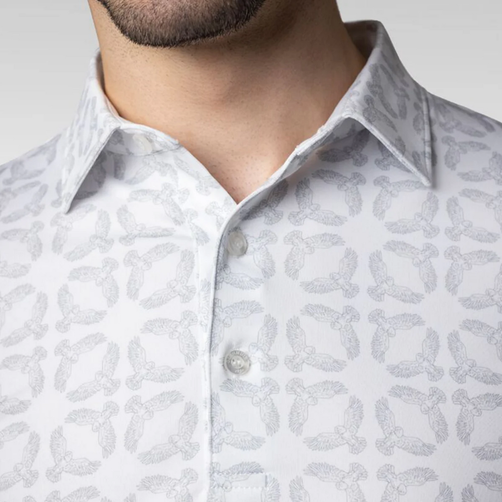 Glenmuir g.Eagle MSP7682 heren polo. Een gedurfde polo met Eagle bird print. Ontworpen voor zowel stijl als comfort, is dit poloshirt ideaal voor casual uitjes, actieve dagen of de golfbaan, zodat u opvalt en u zelfverzekerd voelt.