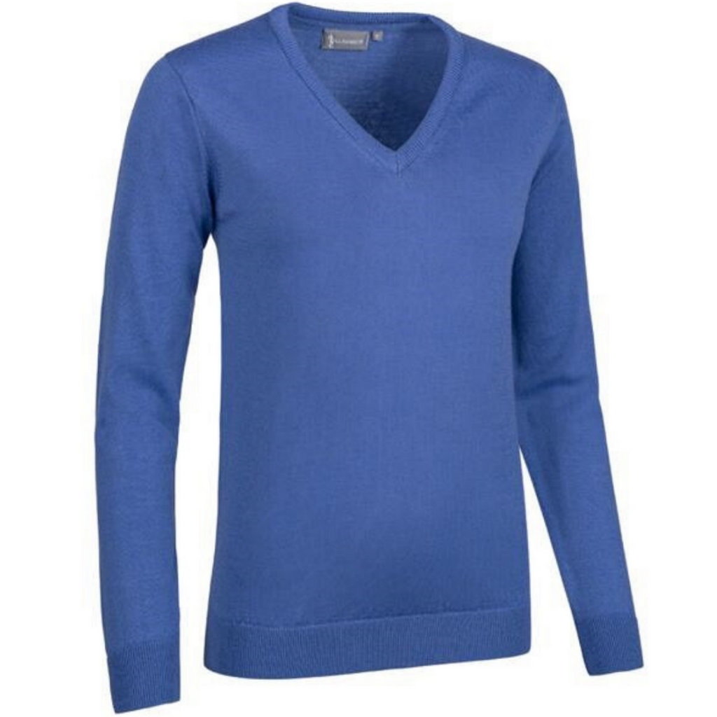 Glenmuir Maya LKM2471 dames golftrui. Een tijdloze trui met V-hals. Natuurlijke merinowol biedt ademend vermogen, bacteriebestendigheid en thermische eigenschappen, versterkt door de UV-bescherming +40. De trui is krimpvrij (mits op de juiste manier gewassen) en heeft een anti-pilling finish, zodat de trui er seizoen na seizoen fantastisch blijft uitzien.
