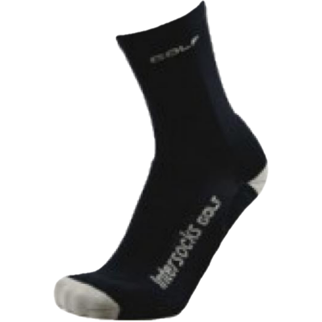 Een topkwaliteit golfsok moet drie belangrijke eigenschappen hebben: 1. Optimale afvoer van transpiratievocht om de voet tijdens de ronde golf onder alle omstandigheden droog en dus blaarvrij te houden 2. Extra ondersteuning van het enkelgewricht voor een stabiele 'stance' en een optimaal rendement van uw swing 3. Uitgekiende elastische delen die de sok onder alle omstandigheden op z'n plaats houden om rimpelvorming - en dus blaren - te voorkomen. Met deze Intersocks Golf Crew haalt u het optimale rendement uit uw dure golfschoenen, seizoen na seizoen! De Intersocks Golf Crew runningsok heeft een wat hogere schacht en is daarmee een ideale partner als het buiten wat minder warm is. De schacht zorgt bovendien voor een optimale afvoer van transpiratievocht. Speciale weeftechnieken waarborgen extra stabiliteit bij oneffen ondergronden. Dus steun waar nodig en dankzij de ingeweven 'airtubes', ventilatie waar gewenst! Het naadloze teenstuk voorkomt irritatie en minimaliseert de kans op blaren. De speciale Skinlife vezel neutraliseert effectief de bacteriën, die zweetvoeten veroorzaken. Features: - Achilleshielbescherming - Ventilatietubes rond voet en wreef - Extra ventilatie rond manchet - Anatomisch vormgegeven linker- en rechtersok - Versterkte hiel, versterkt teenstuk - Anti-irritatie elastische manchet, zakt niet af - Teenstuk met platte naad voor irritatievrij comfort - Extra comfortabele padding rond wreef en voetbed - Leverbaar tot en met maat 50! Samenstelling: 78% Polyamide 20% Polyamide Skinlife* 2% Elastane * Skinlife is een geavanceerde nieuwe vezel die dankzij een antibacteriële werking, zorgt voor een natuurlijk evenwicht van de huid Advies verkoopprijs 14,95€