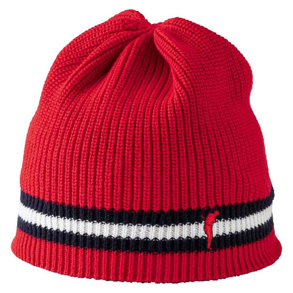 Golfino 3470526-361 beanie. Deze gebreide muts in beanie-look is een aantrekkelijke aanvulling op uw golfoutfit op koelere dagen. Dankzij de combinatie van biologisch katoen en fijn kasjmier is het een goede keuze als u goed beschermd in de frisse lucht wilt sporten, maar niet wilt zweten. De strepenlook op de zoom zorgt samen met het op kleur afgestemde geborduurde logo voor een visueel accent. One size.