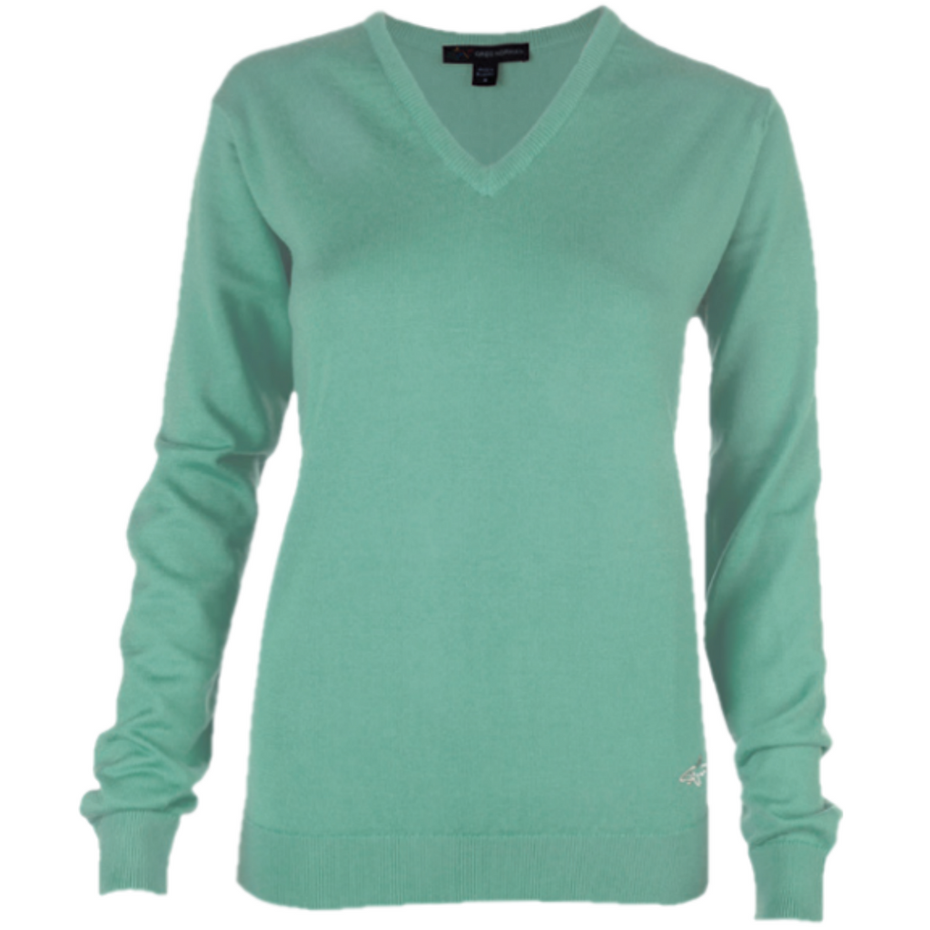 Greg Norman G2S5W002 Petrol dames pullover met V-hals. Een tijdloze pullover, ideaal om over een polo te dragen. Materiaal: 100% extra fijn merinowol.