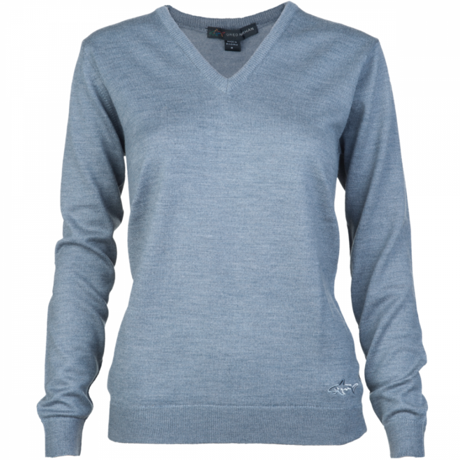 Greg Norman GNF150 Grey Heather dames pullover met V-hals. Een tijdloze pullover, ideaal om over een polo te dragen.