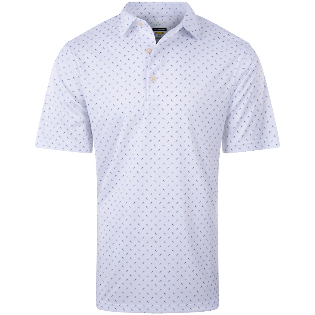 Greg Norman Tee Print G7S23KX06 heren polo. Dit poloshirt met all-over print is uitgerust met PlayDry-vochtregulatie om u koel, droog en comfortabel te houden, met geavanceerde ML75 Microlux. De meest comfortabele vochtafvoerende technische stof in golf, met een luxe uitstraling en handgevoel. Het biedt bewegingsvrijheid en is licht van gewicht.