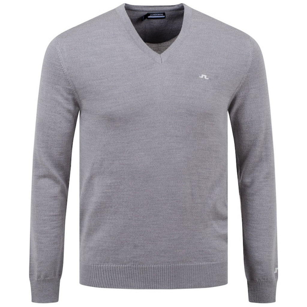 J. Lindeberg GMKW05762-9363 Lymann heren golftrui. Deze trui met flatterende V-hals, geribbelde boorden en contrasterende geborduurde logo's is een echte J.Lindeberg-favoriet. Draag hem op zichzelf of over een polo.
