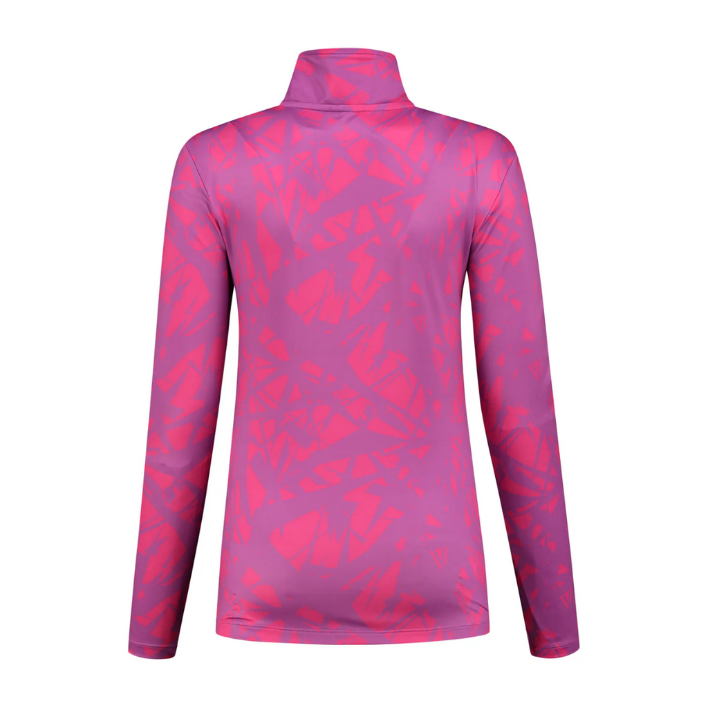 Kou Sportswear Graphic dames midlayer. Deze midlayer pully met rits heeft een prachtige abstracte grafische print die is geïnspireerd op ijs. Het getailleerde model zorgt voor een perfecte warme en comfortabele laag. De zilveren rits maakt de midlayer stoer en chic tegelijk. Open heeft het een extra vleugje detail, want de rits kan wijd open en de col zorgt ervoor dat elk item dat u erover draagt comfortabel en warm aanvoelt in de nek. De techno-stof van gerecycled polyester en geborstelde binnenkant zorgt voor een extreem zacht, zijdeachtig gevoel en houdt i warm, sluit als een tweede huid aan op het lichaam en volgt elke beweging die je maakt. En is daardoor geschikt voor allerlei sportactiviteiten, zelfs de meest uitdagende en langdurige.