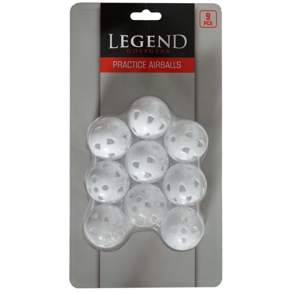 Legend 267788 practice airballs. Witte plastic oefen golfballen geschikt om binnen en buiten te oefenen. Inhoud: 9 stuks.