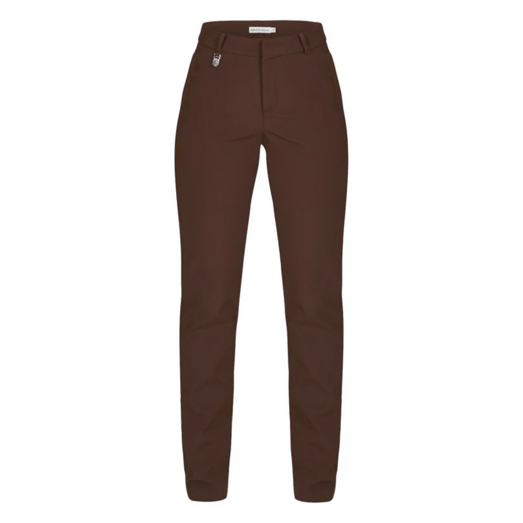 Rohnisch Lexi 110739 S322 dames golfbroek. Deze golfbroek is gemaakt van gerecycled polyester en stretch-elastaan. Dit model heeft een drielaagse softshell-stof die winddicht en waterdicht is aan de buitenkant en gevoerd met zachte, warme fleece aan de binnenkant. Deze klassieke broek heeft een hoge taille en een normale pasvorm. De Lexi-broek is flatterend, comfortabel en geschikt voor koud weer.