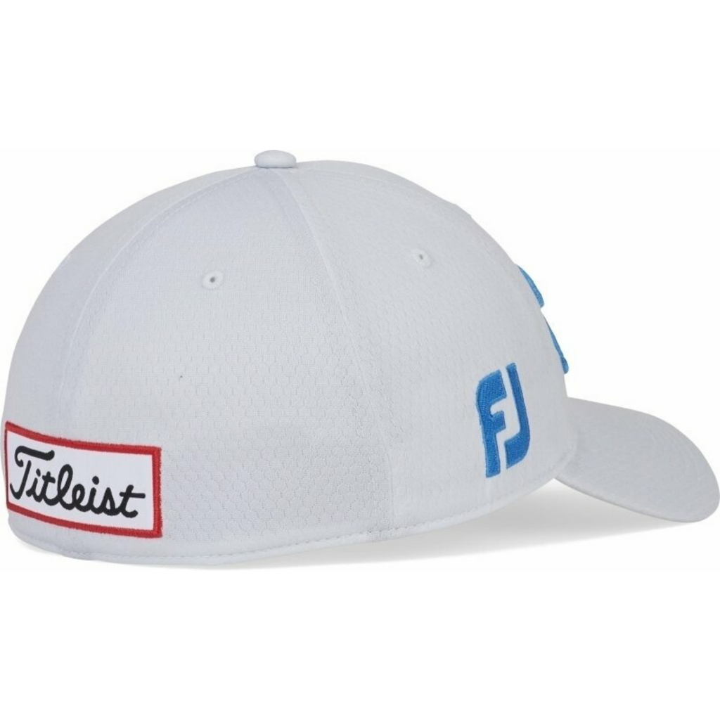 Titleist TH24FTEN2-048 Tour Elite Olympic/Marble/Bonfire cap. Deze Tour Elite pet is favoriet bij tourprofessionals over de hele wereld, heeft een op maat gemaakt ontwerp met een standaard gebogen klep, 3D geborduurde Titleist-letters en lichtgewicht honingraatgaas voor een comfortabele pasvorm en een onderscheidende look. Onderzijde van het vizier is oranje.